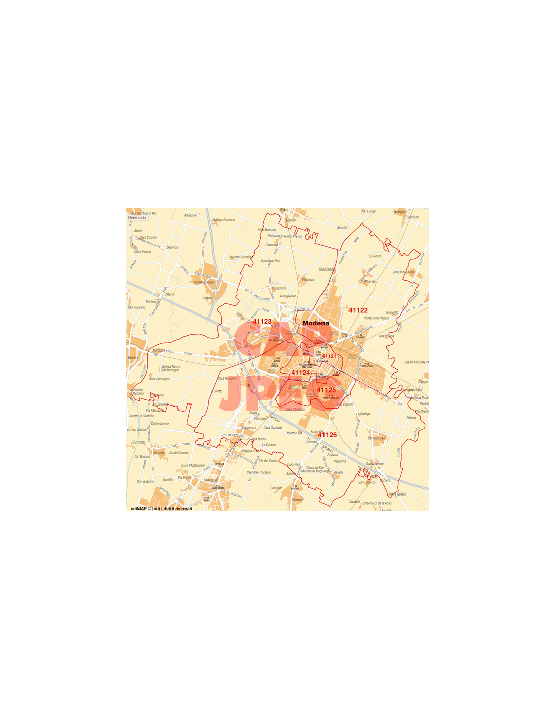 Mappa di Modena jpg 1:100.000 con CAP