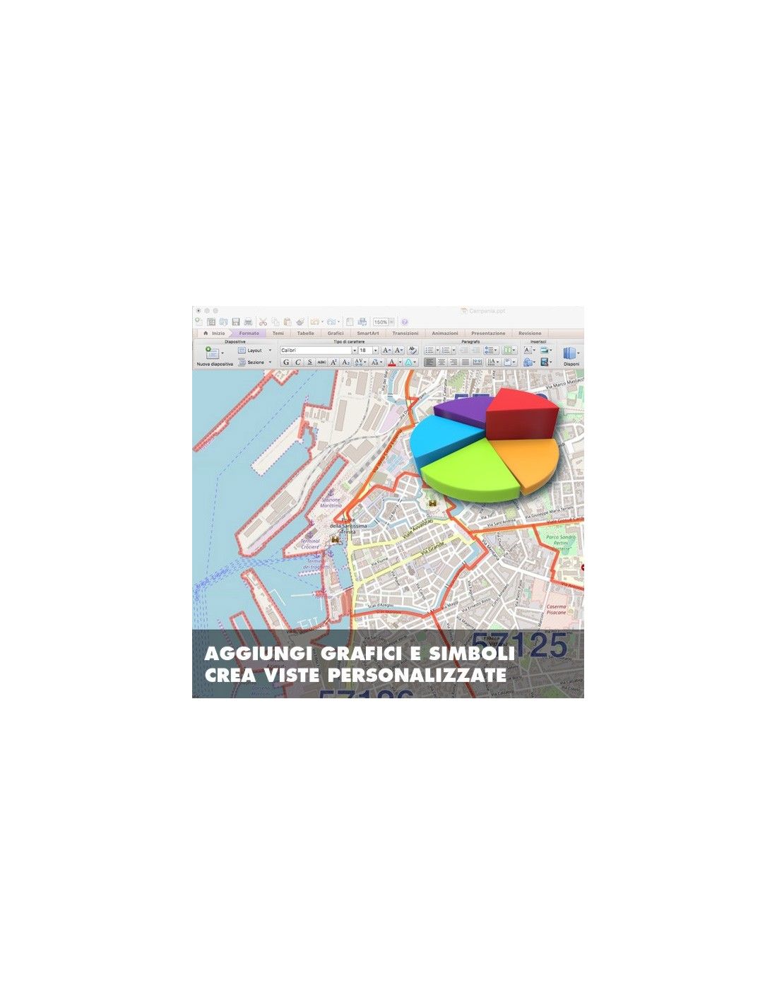 Seleziona un'area e fai clic sulla palette dei colori. Raggruppa i comuni per creare zone omogenee, aggiungi simboli e tratteggi, racconta la tua storia arricchendola con grafici, animazioni, transizioni e note personali. Sprigiona la tua creatività!