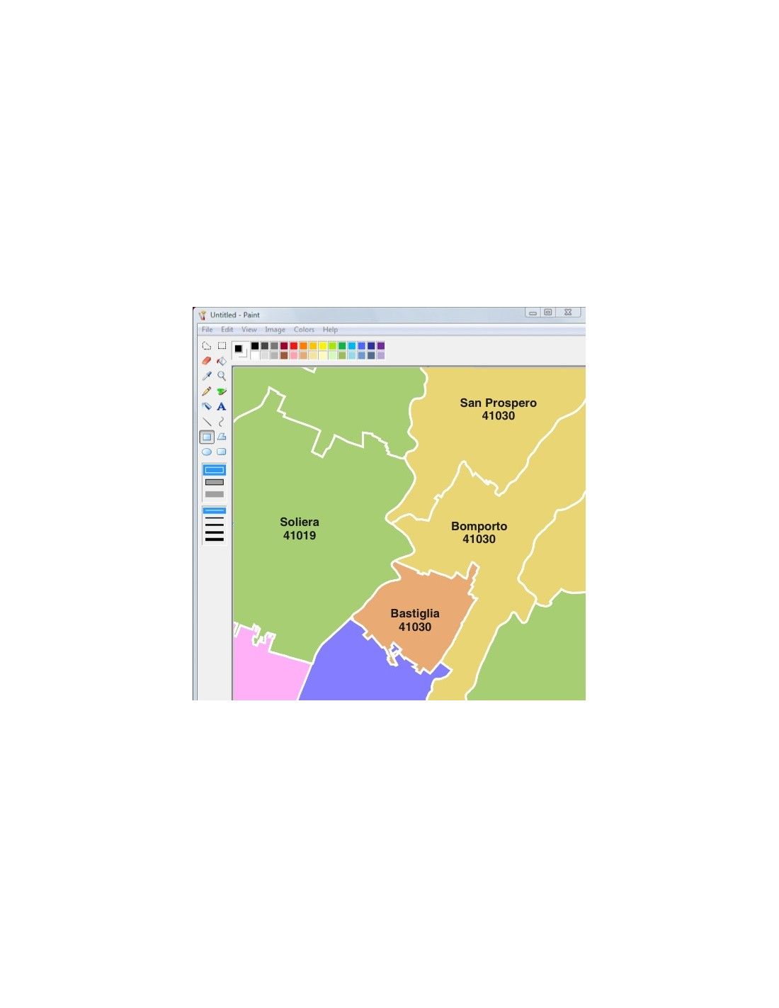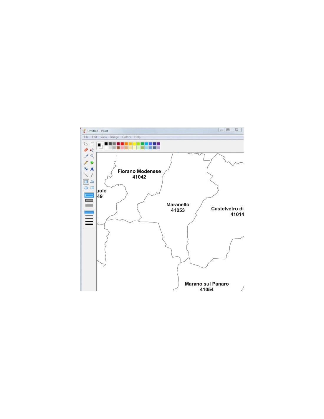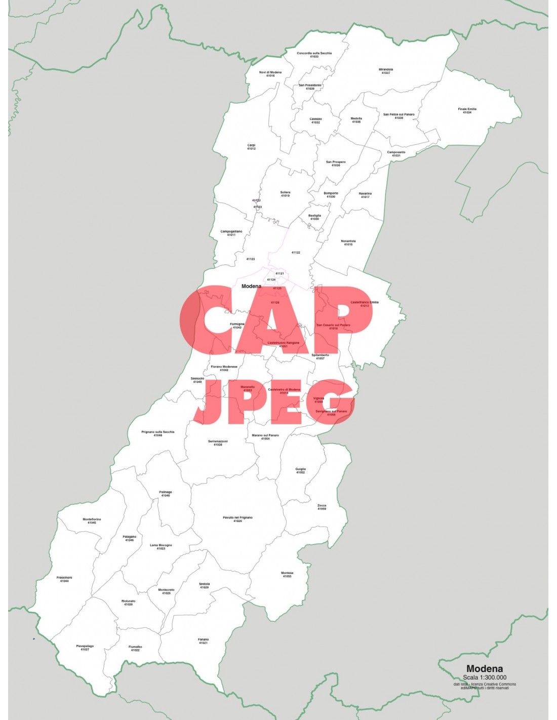 Mappa dei comuni con CAP della provincia di Modena formato jpg scala 1:300.000. Risoluzione 300 dpi.
