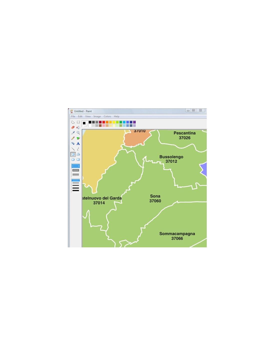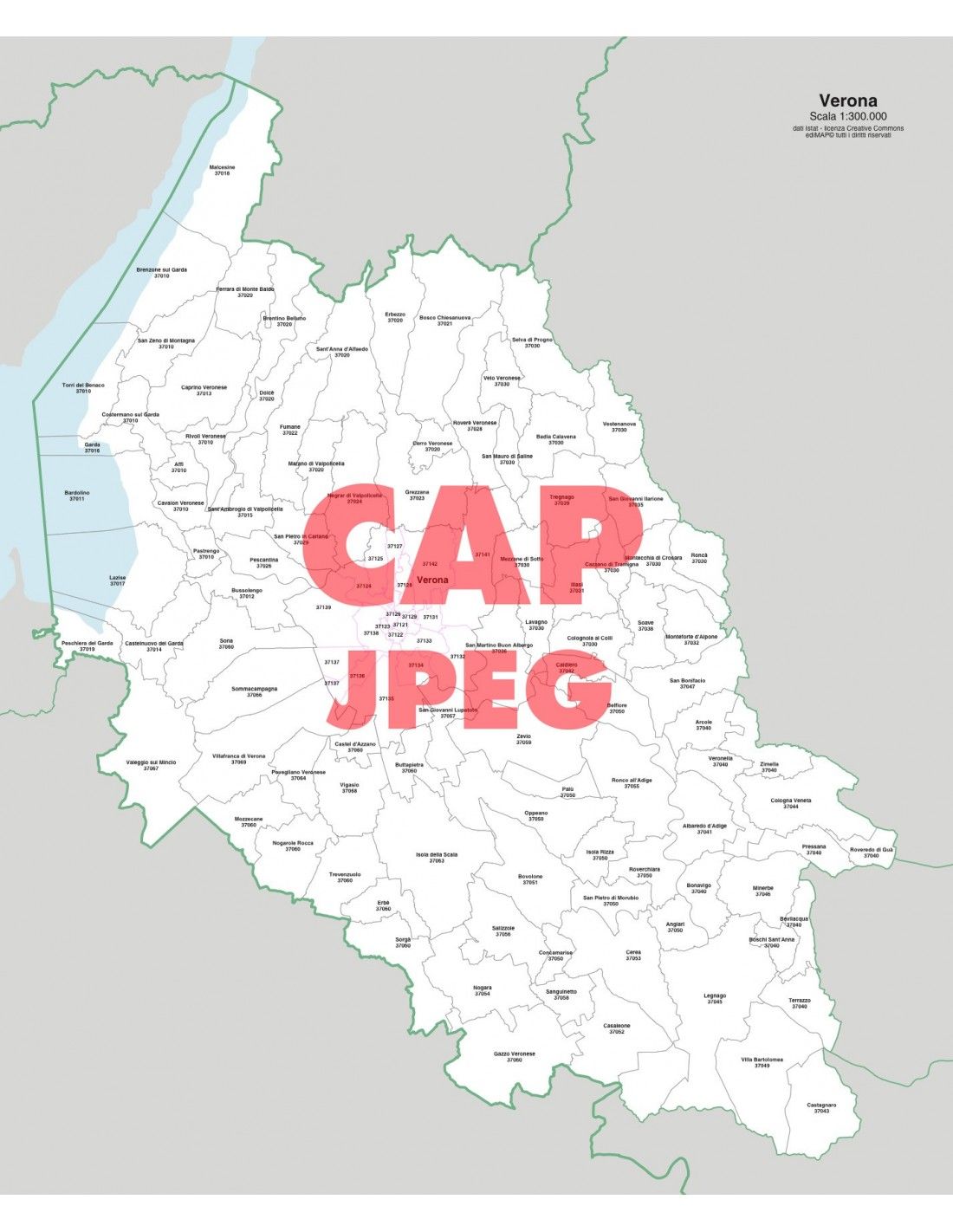 Mappa dei comuni con CAP della provincia di Verona formato jpg scala 1:300.000. Risoluzione 300 dpi.