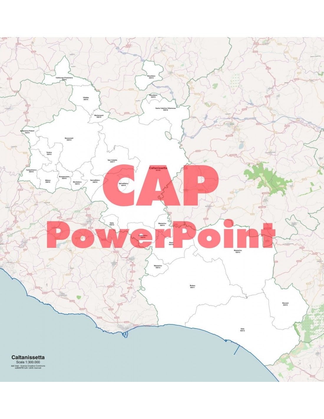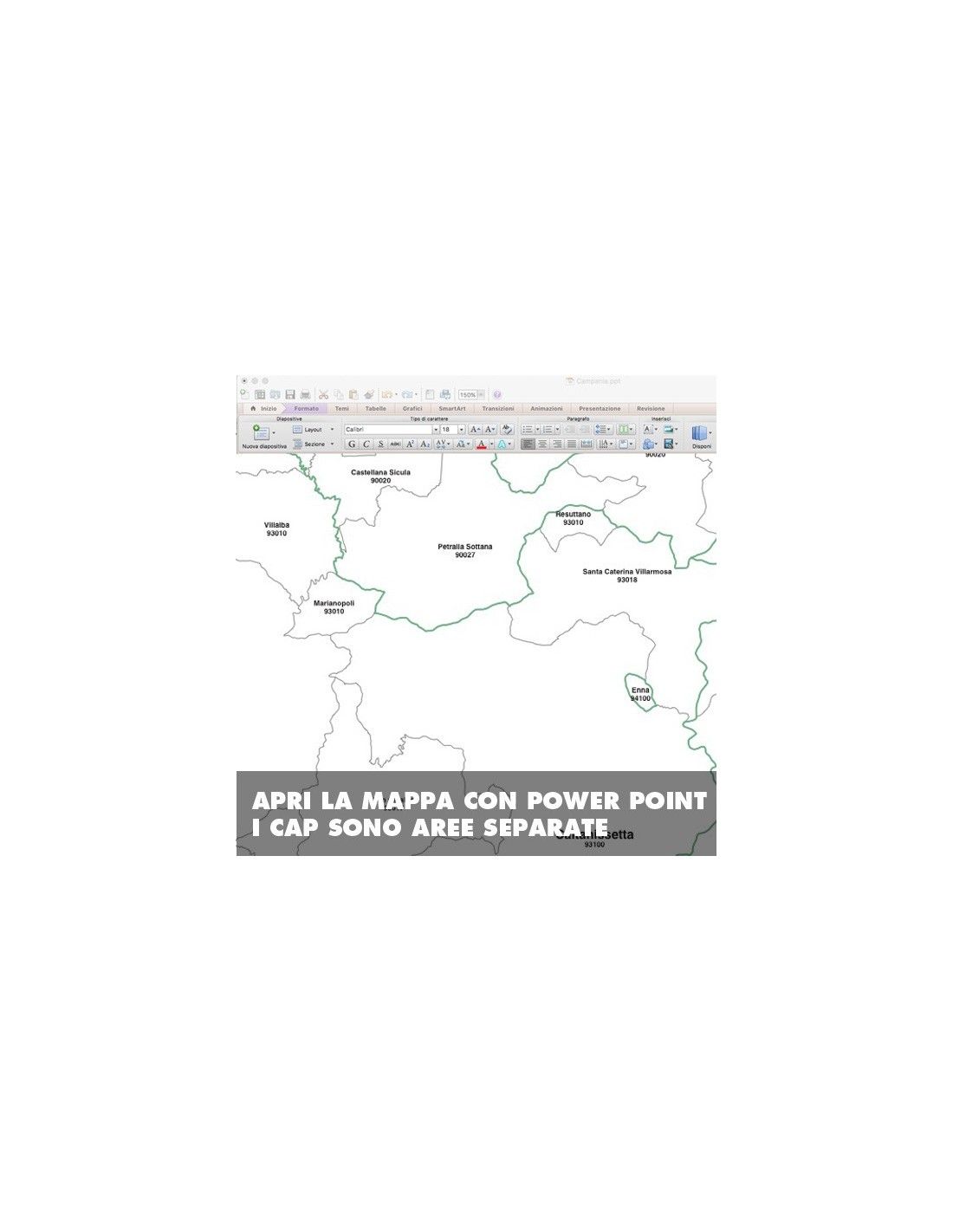 Mappa dei comuni con CAP della provincia di Caltanissetta formato PowerPoint scala 1:300.000. Tracciati modificabili.