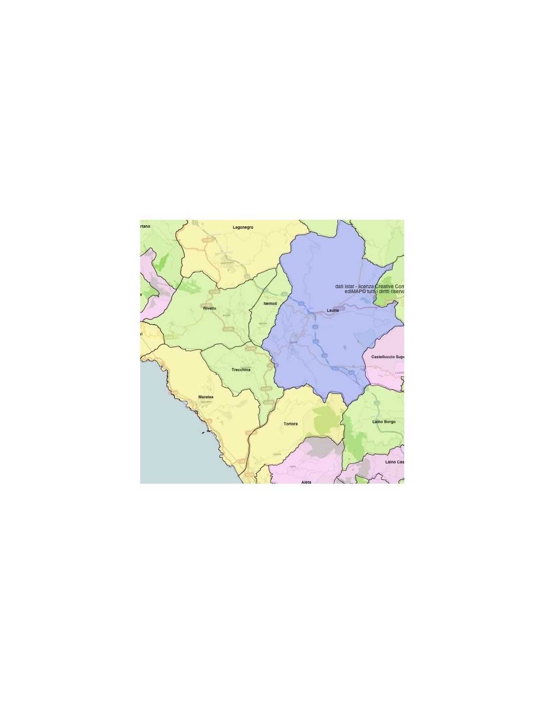Mappa dei comuni della provincia di Potenza, formato KML per visualizzare i contenuti sulla piattaforma di GoogleEarth™. Colori e dati modificabili.