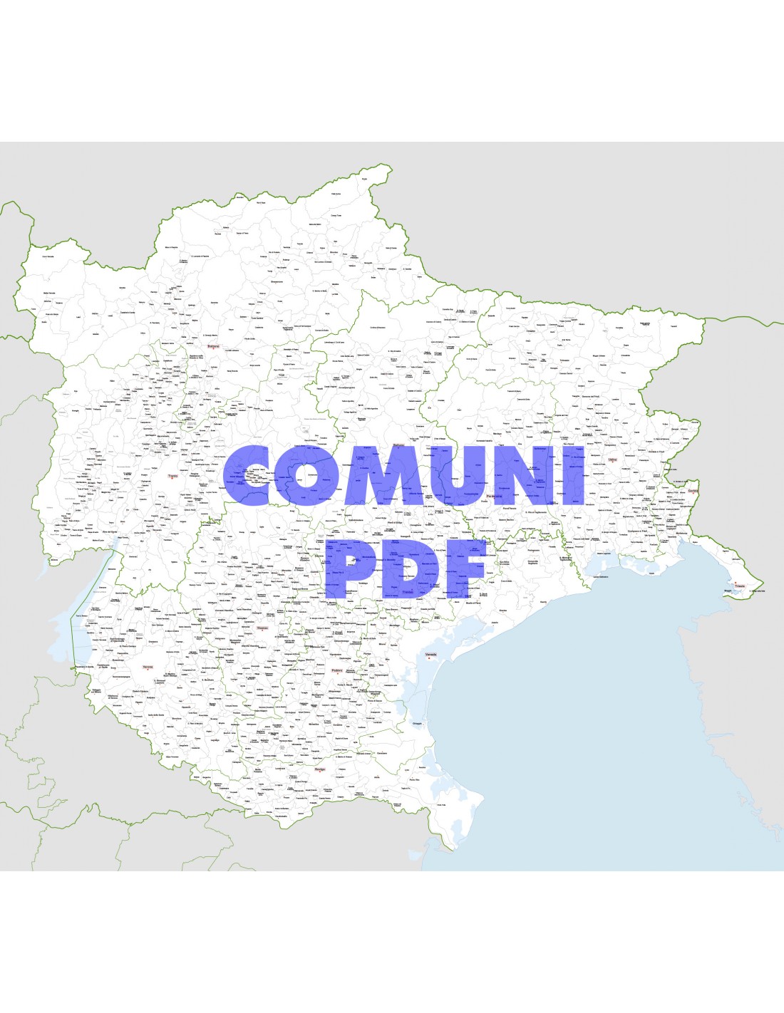 Mappa dei comuni del Triveneto in formato pdf con tracciati modificabili.