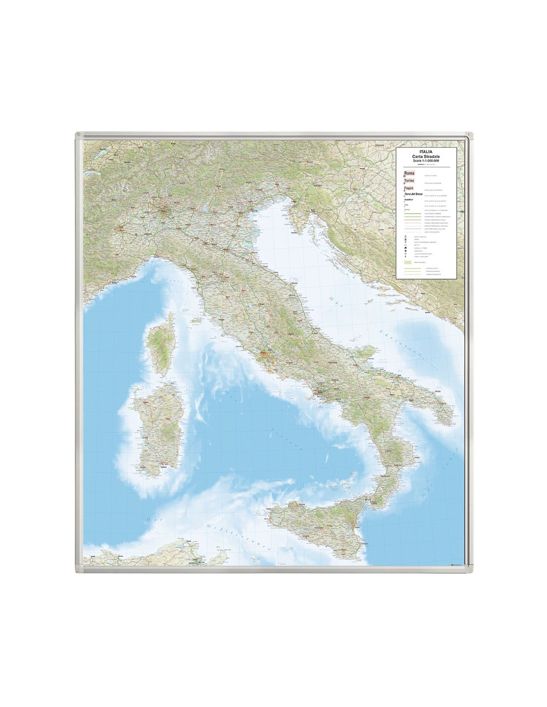 Mappa dell'Italia Politica scala 1:1.000.000 su pannello, dimensioni 120 x 135 cm. Stampa diretta HD-UV ad altissima risoluzione su pannello rigido ultraleggero sandwich da 1 cmEstrema leggerezza, ottima resa estetica, intervento per il fissaggio minimoColori brillanti e durata per interni praticamente illimitata.Spedizione con corriere espresso: GRATUITA