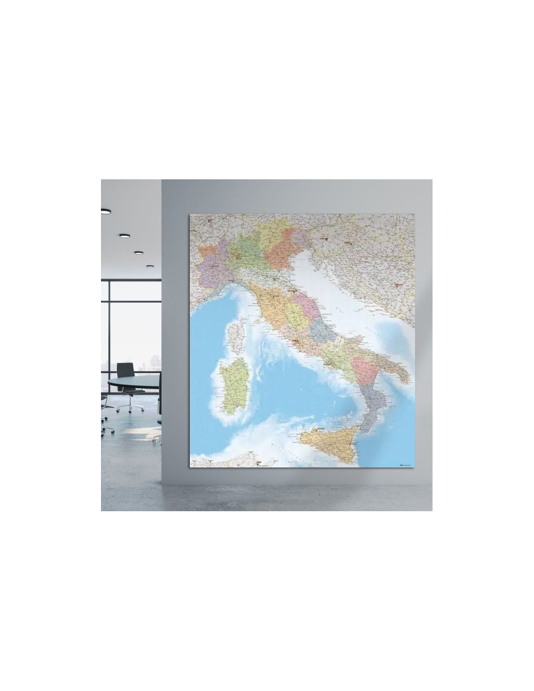 Mappa dell'Italia Politica su pannello, GRANDI DIMENSIONI 178 x 200 cm.